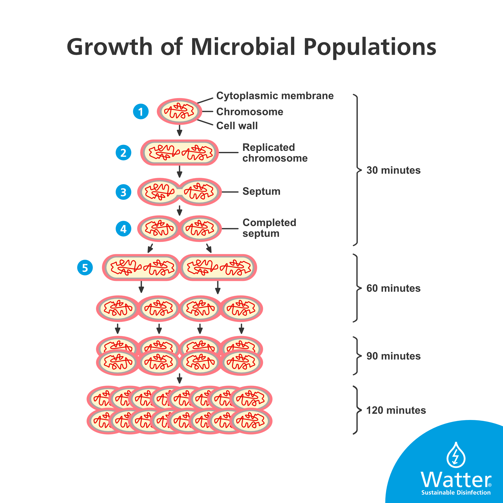 Mikroorganismen wie Legionellen können sich exponentiell vermehren: Innerhalb von 8 Stunden kann ein einziges Bakterium auf Hunderte von Millionen anwachsen. Der Whirlpool ist nicht nur wegen seiner Temperatur ein idealer Nährboden für Bakterien, sondern auch wegen des geringen Wasserdurchflusses, der das schnelle Wachstum der Bakterien zusätzlich fördert.